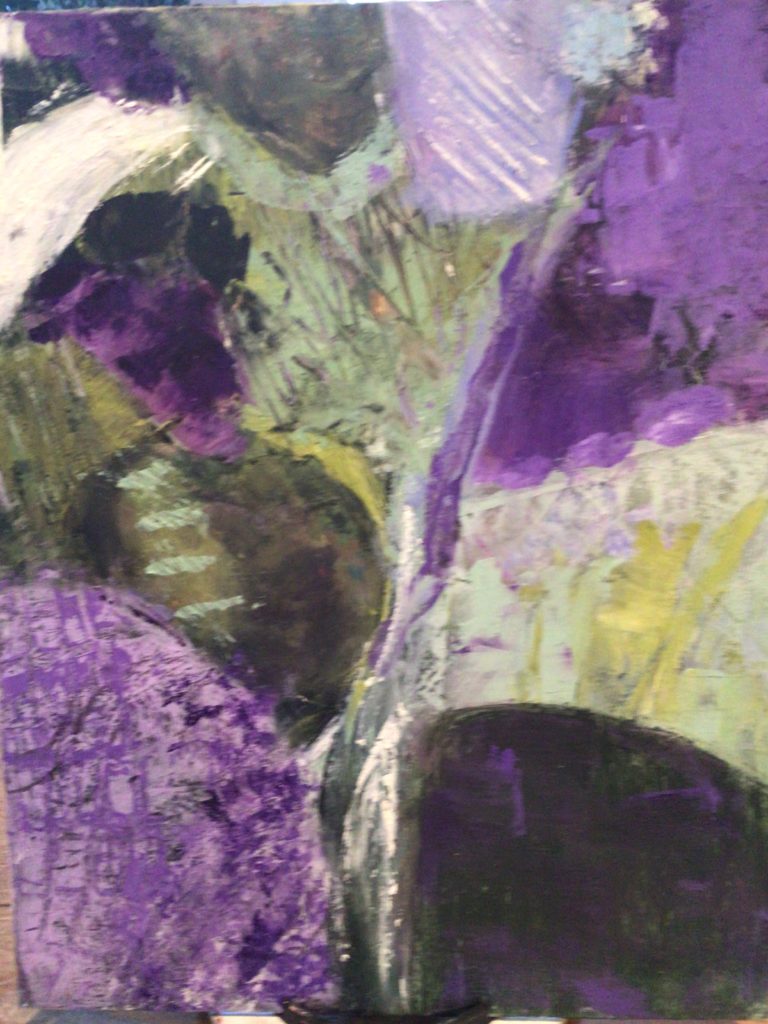 Shar, I love the textures and colors popping through in unusual marks. The undulating shape running through the middle gives it movement as well. It seems like her exercises are inspirational.