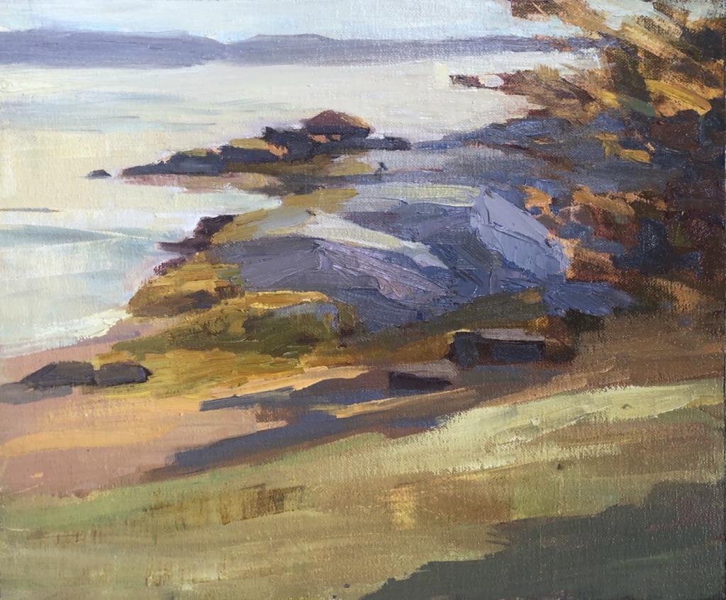 Susan 10/22 Oct 22, 2021 | Susan Roque Bluffs in Fall. 6 Comments margaret on October 22, 2021 at 10:04 am It feels melancholy and still. i love how you capture the sea weed on the rocks Reply Susan on October 22, 2021 at 4:04 pm Deb on October 22, 2021 at 12:48 pm It’s very serene, but also looks a little lonely, as though it’s going to sleep for the winter -which it is, in a sense. I think the purple-gray rocks set the mood. Reply Sharon on October 22, 2021 at 4:24 pm Once again your colors are beautiful. I love the contrast of the purple rocks and the yellow ochre. Reply Lesley Braren on October 23, 2021 at 6:24 am I’m feeling Rogue Bluffs and the memories I have from being there. Les Reply Adrienne on October 23, 2021 at 6:43 pm Looks like a very peaceful setting ag low tide. Pretty fall colors Reply Submit a Comment Cancel replyYour email address will not be published. Required fields are marked *Comment * Name Email Δ