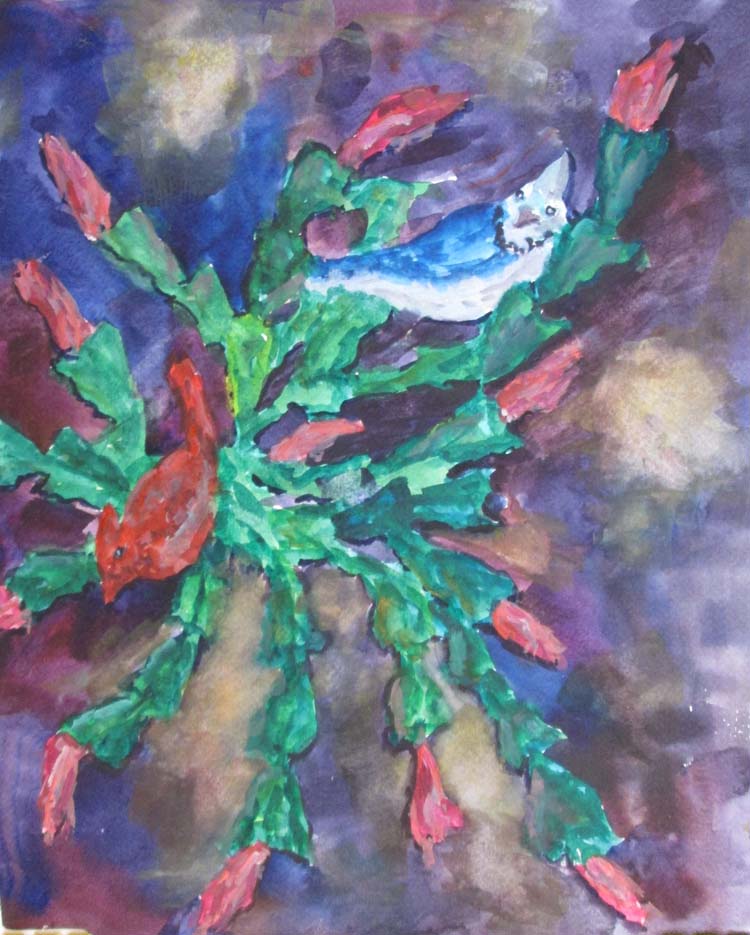 Les 12/3 Dec 3, 2021 | Les Cactus and birds 5 Comments Deb on December 3, 2021 at 1:52 pm This is very “nature’s Christmas” to me. The flowers look like lights, and I always love your birds. Reply Margaret on December 3, 2021 at 3:23 pm Your birds look right at home in the Christmas cactus! Reply Sharon on December 3, 2021 at 8:57 pm Les, I think you’ve found your voice! This is really nice. Reply Susan on December 4, 2021 at 5:24 am I love your Christmas cactus! I have to admit, when I first saw this, the pow to me were the colors and design. They’re beautiful in the abstract. Reply Adrienne on December 4, 2021 at 6:33 pm Your little animals are always a pleasing addition to your paintings but I have to say, I particularly like the background in this piece. Reply Submit a Comment Cancel replyYour email address will not be published. Required fields are marked *Comment * Name Email Δ
