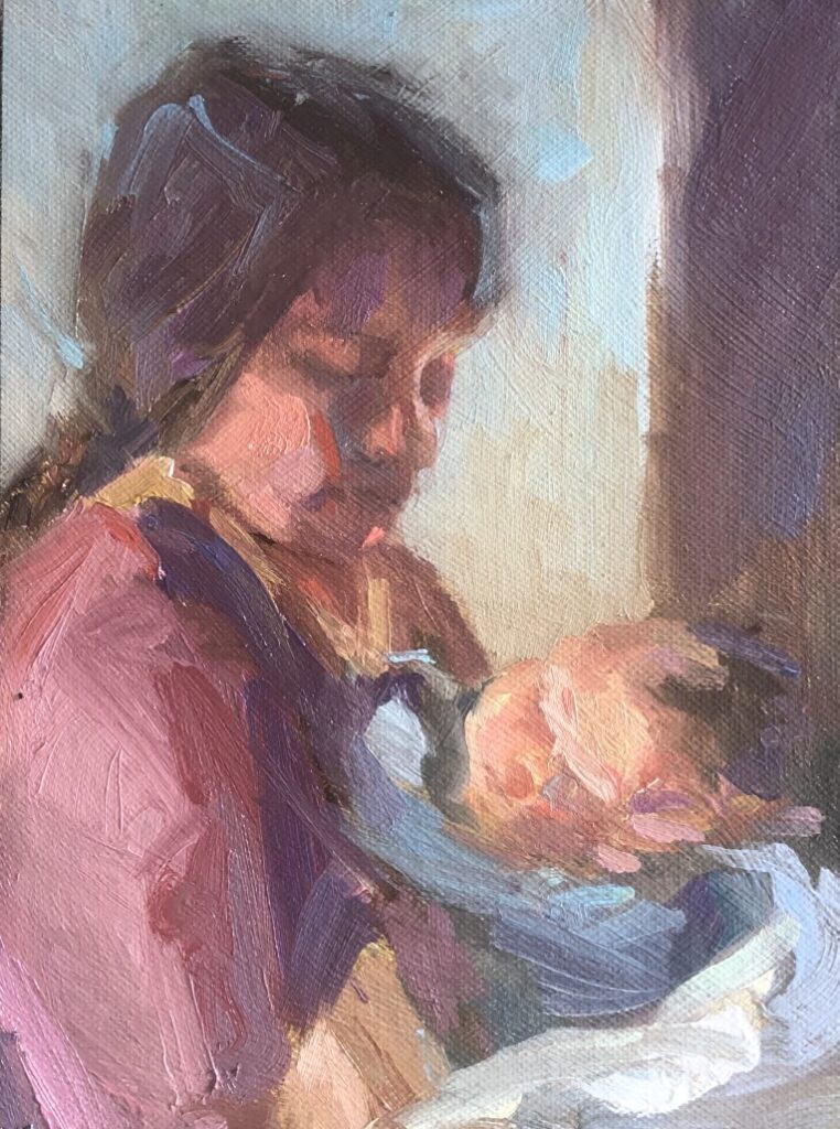Okay… a brief rant. I love doing figures… using color, loosely goosey, but when I go near a face, the stomach tightens, the sweat breaks out, I forget how to paint… So this is it. I have to face my demons… It’s hard to totally avoid faces when you like doing people. I like suggestion… not a literal translation… ugh. You may see a lot of faces for a while.
