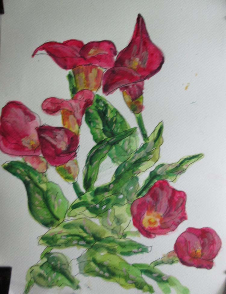 Les 6/3 Jun 3, 2022 | Les Calla Lilies 4 Comments Margaret on June 3, 2022 at 9:03 am very nice drawing and i love the limited pallet Reply Deb on June 3, 2022 at 10:42 am Very pretty, and I love the design! Reply Adrienne on June 3, 2022 at 3:39 pm Nice shapes, the outlining enhances the flowers and leaves. Reply Susan on June 10, 2022 at 8:05 am What beautiful organic shapes Les. My eye wants to follow each undulation. Reply Submit a Comment Cancel replyYour email address will not be published. Required fields are marked *Comment * Name Email Δ