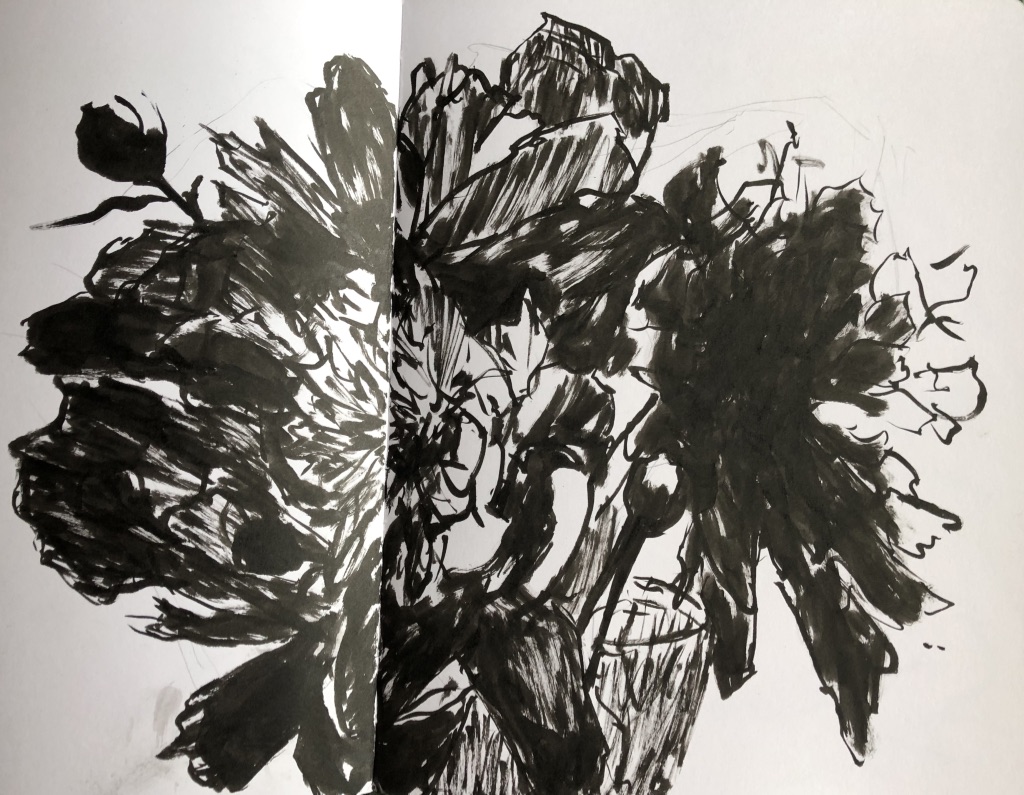 This is great and a reminder of how great doing some sketching can be. Another reminder was when I was organizing some old sketch books and I found the one you gave me in January of ’95 I think it’s when we went to the tree farm and sketched from your jeep. You copied a poem inside the cover “The Tree” Ezra Pound!!!!