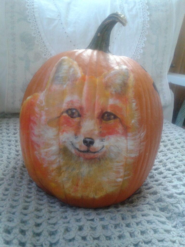 That’s a really happy looking fox, the pumpkin seems to be a great canvas for you!
