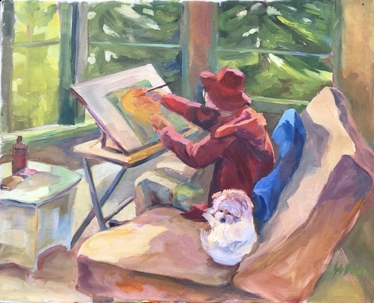 I remember back when Doris was working on an apple a day… I miss her. She was such a good sport, always keeping up with us. She also put up with me… being a favorite model. The painting below was done on the Infirmary porch.