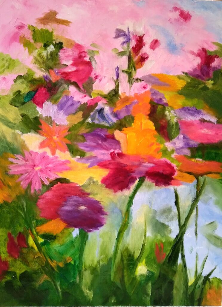 Adrienne 5/26 May 26, 2023 | Adrienne A Field of Flowers 5 Comments Deb on May 27, 2023 at 8:54 am This is just beautiful! I love the color. It makes me happy just looking at it! Reply Lynda Marseglia on May 31, 2023 at 9:02 am I agree with everyone, it’s so beautiful!!! Les on May 27, 2023 at 9:09 am I agree with Deb, lots of beautiful color, it does feel happy. Les Reply Susan on May 28, 2023 at 7:18 am Riotous, joyful color! I love these dancing flowers… As with the above comments, they make me happy! The flow of blue into that sea of pink, very creative and effective. Reply Margaret on May 28, 2023 at 3:32 pm Wow! You have really jumped into color! Love it Reply Submit a Comment Cancel replyYour email address will not be published. Required fields are marked *Comment * Name Email Δ