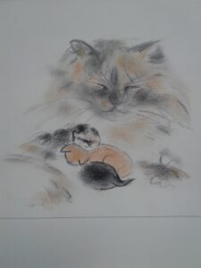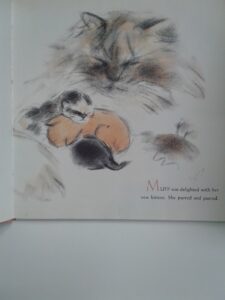 I love the book title! Such soft, lovely drawing. The kittens are adorable and so simply rendered. Beautiful!