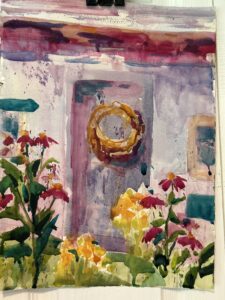 I love the looseness and the design of this! You create such beautiful flowers with your watercolors! What a welcoming front door!