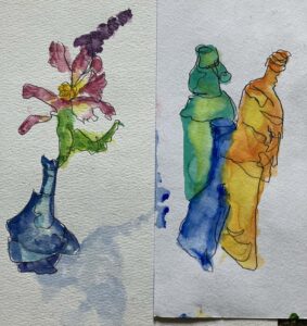 These are blind contour drawings that Kathy and I have been doing, they help to get a good feeling of the subject before doing the painting.