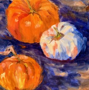 Those pumpkins really feel alive and pop off the canvas.