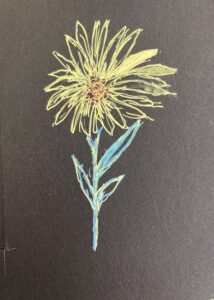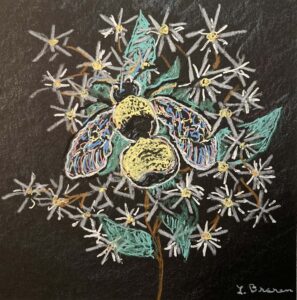 We all vote for #1! Beautiful! I can feel the chill of the icicles and just love the shapes and colors. The black paper really captures the feeling of winter’s stillness. (And highlights the joy of the flowers and bees!)