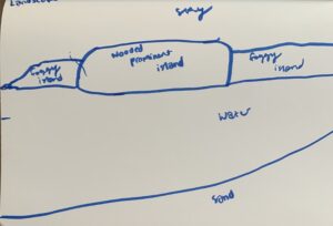 2. 2. This is a landscape of a picture I found of Roque Bluffs Beach from this summer. I wrote in what each piece was to help me visualize a little bit better.