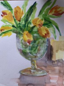 This is very pretty, Les, and the thing that really caught my eye is the glass. The colors and reflected light are beautiful. It’s also quite an accomplishment since it’s watercolor!