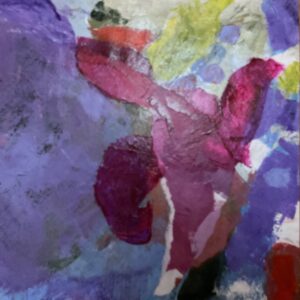 I see an iris surrounded by beautiful colors and shapes, with the white outlining some of them. I also like how the painting is lighter at the top, giving it an airy quality. Don’t you love it when it comes together almost on its own?