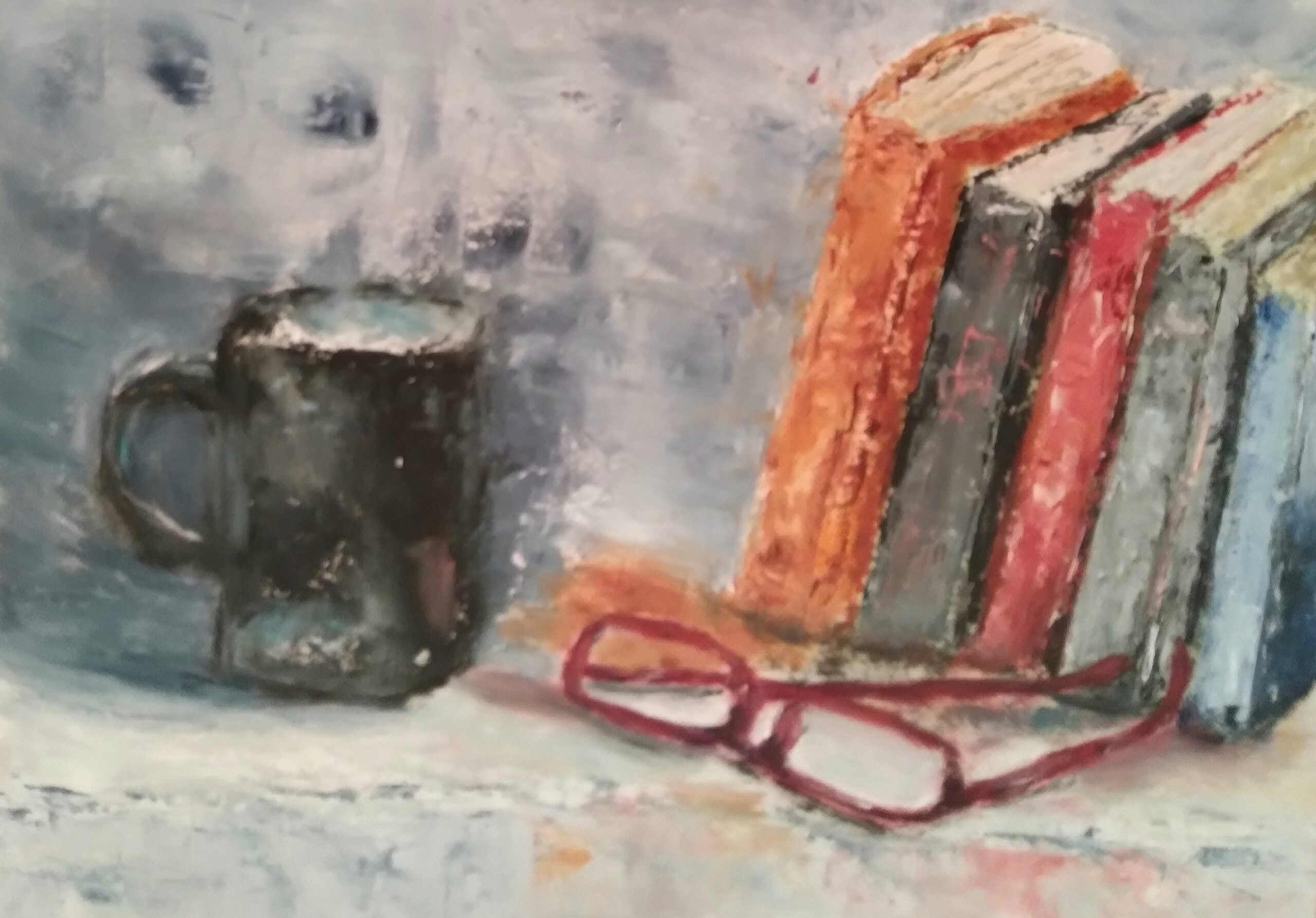 I was trying to be extra (for me) looser & more colorful. I began with 1 stroke down, move on. I got to the tomatoes and old habits came back so the tomatoes are muddy. I did hang in for a bit though.